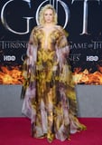 Um, hi. I would like to officially pledge my allegiance to Gwendoline Christine this afternoon, after she generously gave us all a lesson on owning the red carpet on Wednesday night. At the Game of Thrones season eight premiere event on April 3, the actress stepped out looking like a literal work of art in an Iris van Herpen floor-length gown with a purple and gold cloud print. The silky number - which was a very far cry from her knightly ensemble on the show - looked like an abstract painting, and featured long, exaggerated sleeves that she definitely didn't hold back from showing off as she posed for photos.